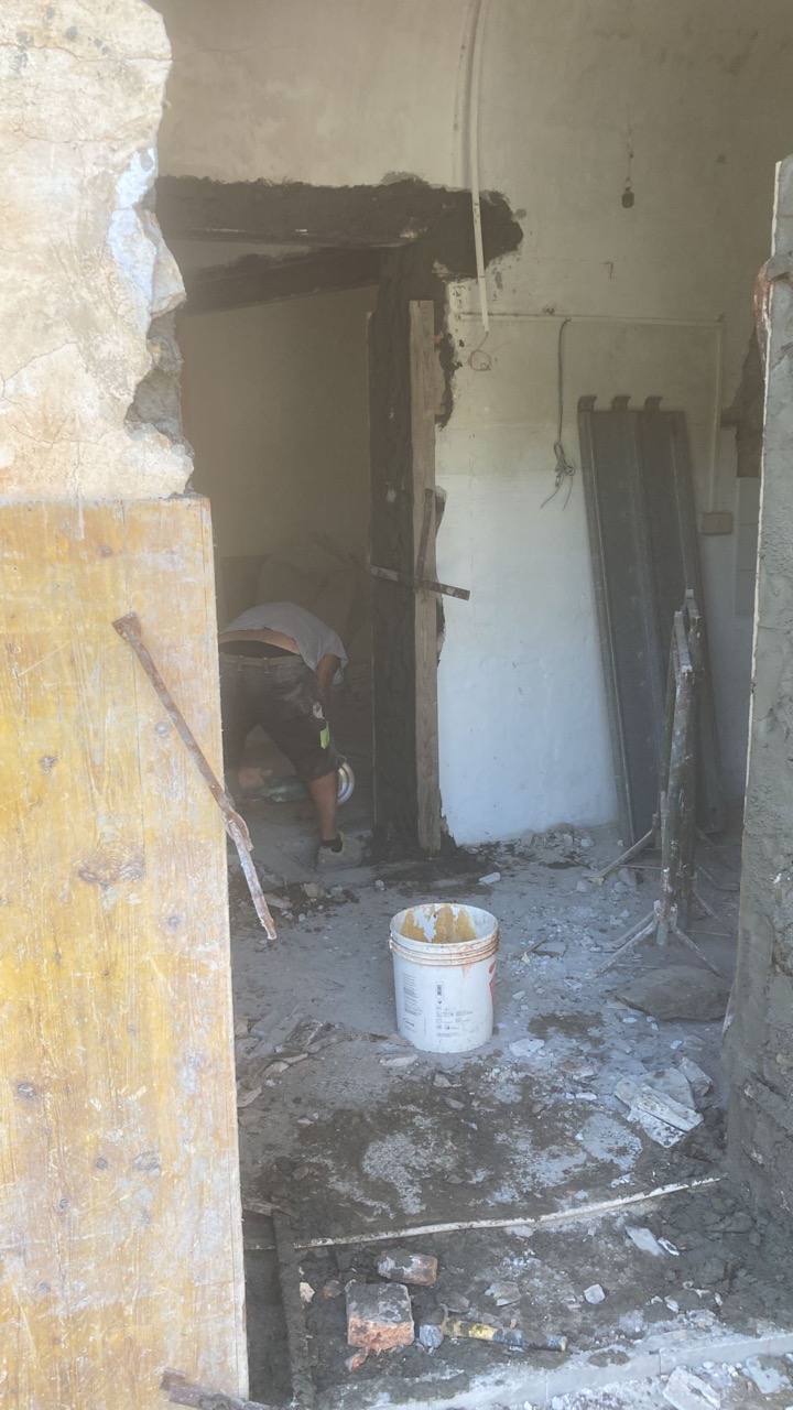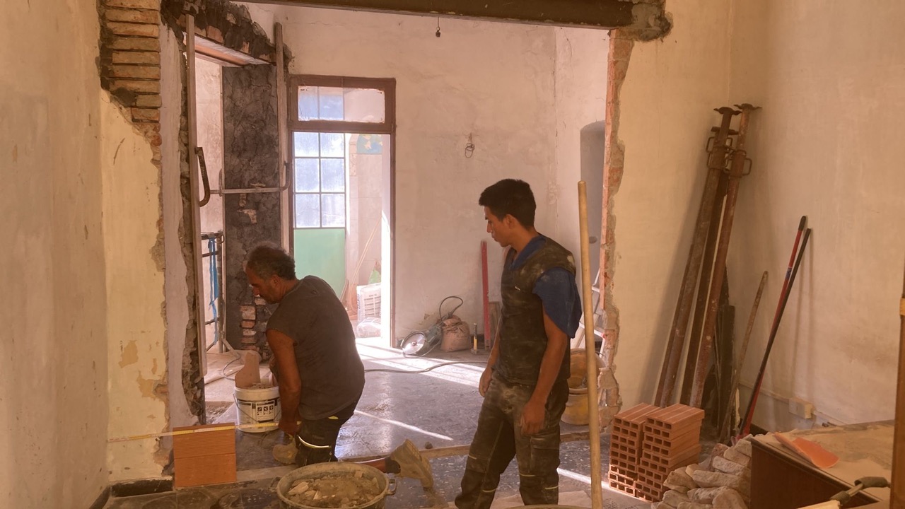 Men nog om det – Fabio och Marco har huserat i huset medan vi var borta och rivit väggar. De har framförallt tagit bort det märkliga badrummet på verandan, tagit fram den gamla öppningen till terrassen och breddat dörröppningar där vi ska ha kök och matsal. Vi fick bilder via Whatsapp med rivna väggar och ilagda järnbalkar.